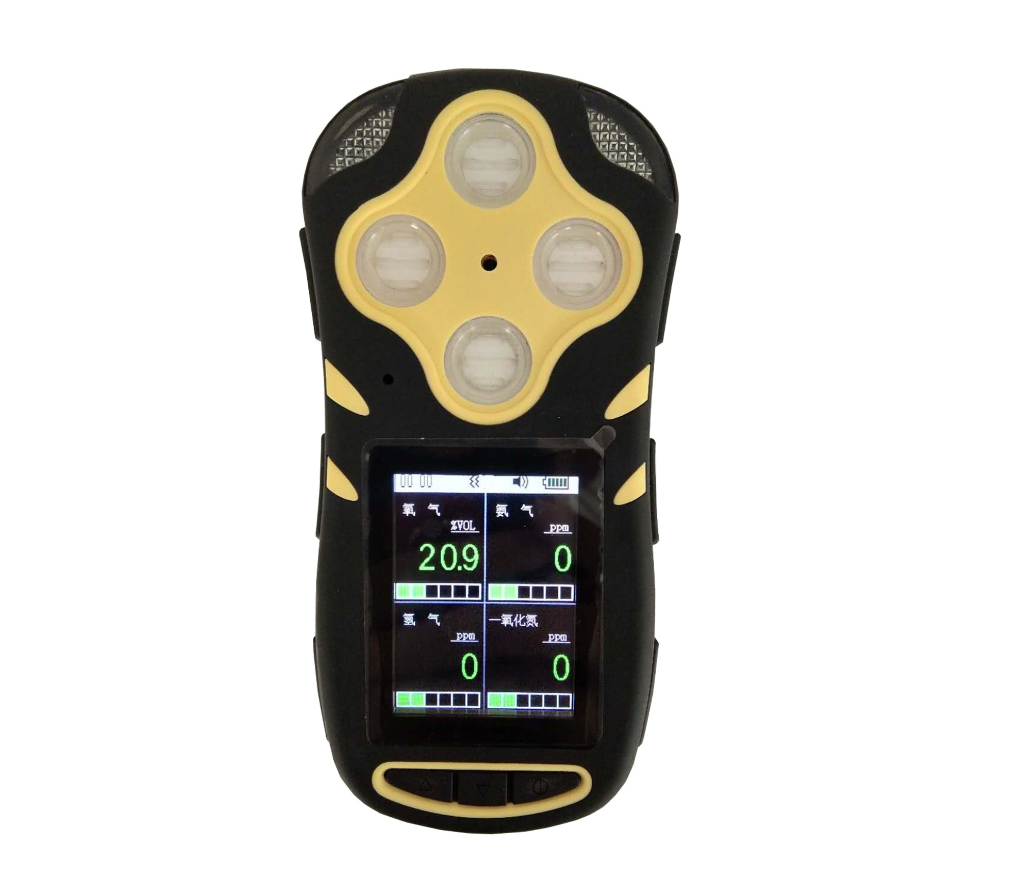 一、基本功能:1、可以支持O2/NH3/NO/H24种的气体检测2、具有声、光、震动三重报警3、TFT彩色液晶显示屏,中英文界面操作界面,切换简单方便4、高亮度