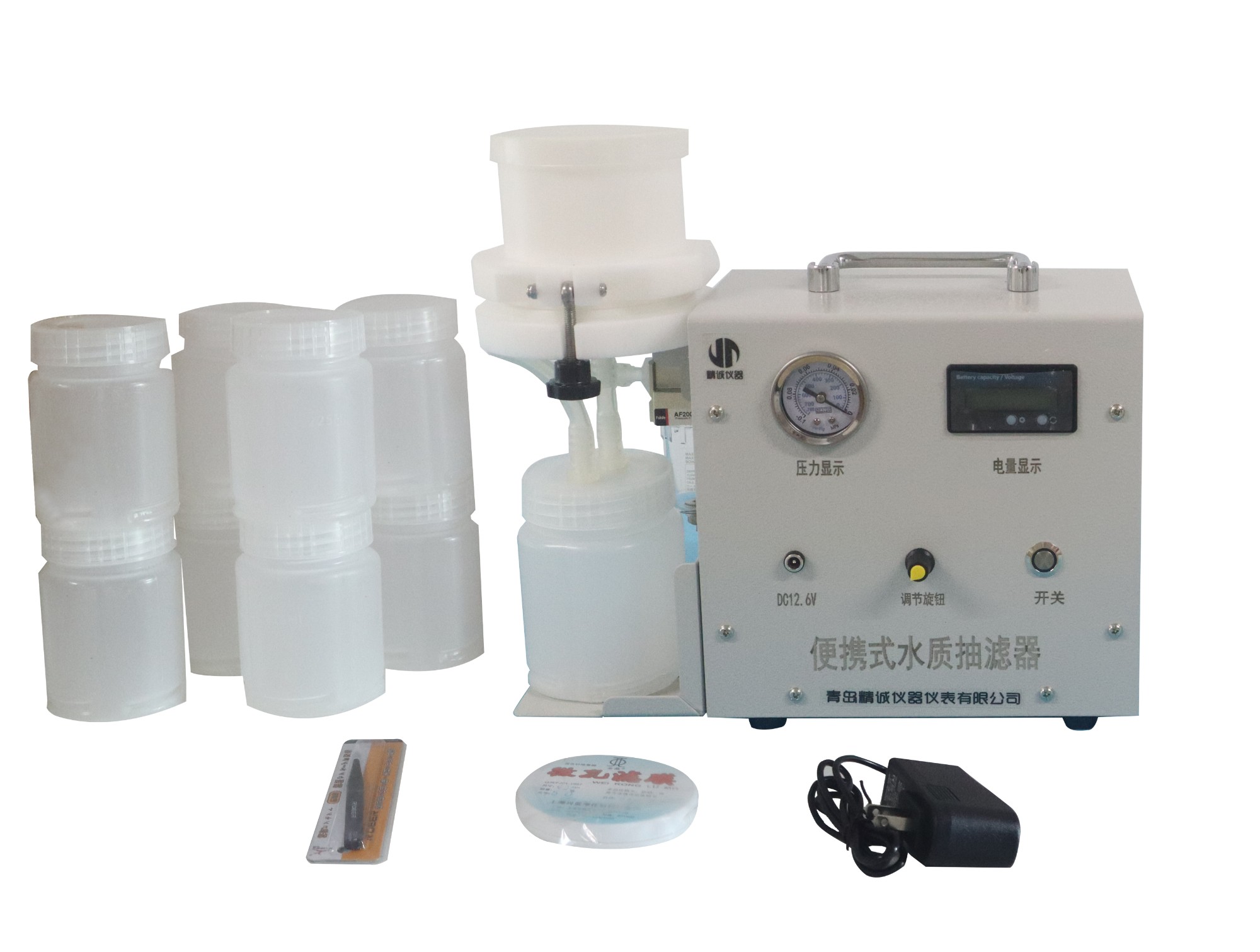 9)便携式抽滤器内置高性能锂电池,可无需交流电使用;