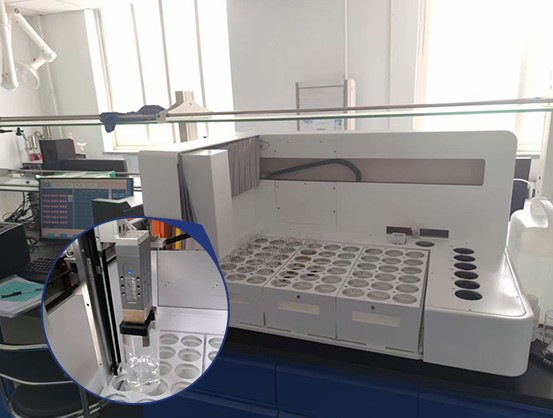 采用发布进口电驱动三轴机器人运动臂,代替人工,批量自动转移样品,实现从待测区至试剂添加区 ——样品消解区——自动滴定区的样品杯转移。